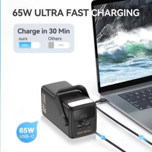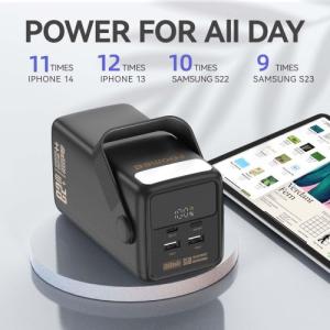The FOOMEE 60,000mAh Power Bank is built to be a powerhouse for your gadgets. Its 65W PD (Power Delivery) output makes it versatile enough to charge high-demand devices like MacBooks and high-end laptops directly. This unit provides enough energy to charge an iPhone 14 up to 11 times or a Samsung S23 up to 9 times on a single full charge cycle.