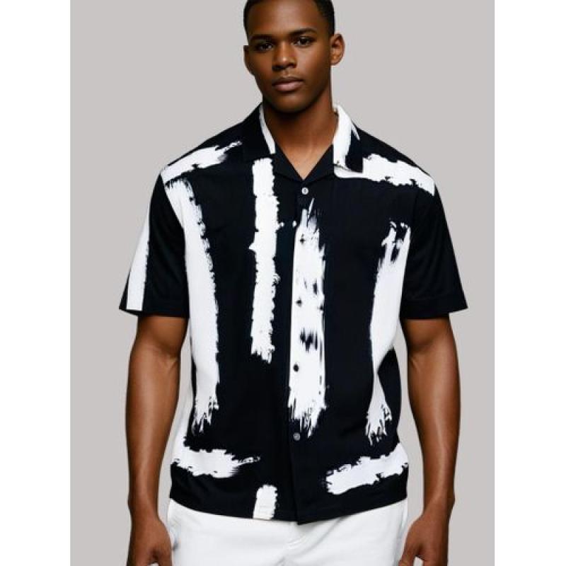 Men's Modern Abstract Brush Stroke Shirt (Black & White)