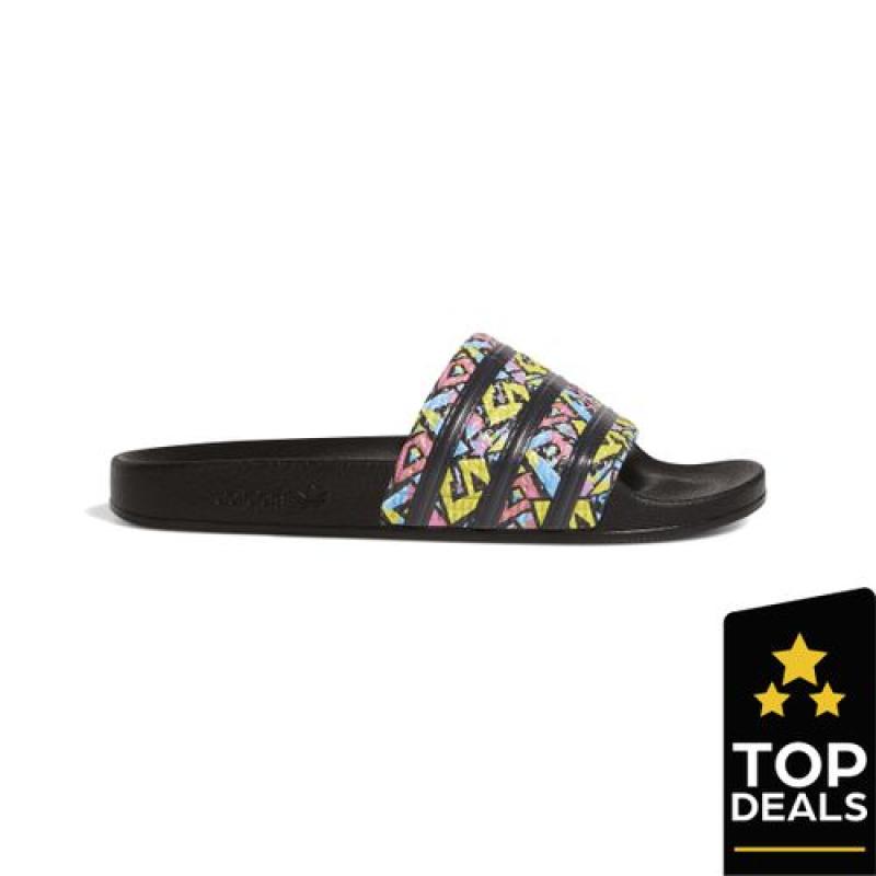 Perfect for the beach, the gym shower, or just lounging around the house, these slides offer a striking balance of high-fashion aesthetics and everyday utility. The iconic three stripes are subtly integrated into the colorful bandage upper, ensuring that your style is as recognizable as it is unique.