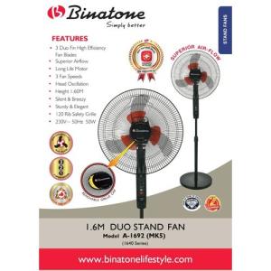 Binatone 1.6M Duo Stand Fan A-1692 (MK5) – Elegant & Powerful Cooling