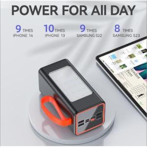 Whether you are carrying an iPhone, Samsung, or a tablet, this power bank has you covered. It provides enough juice to charge an iPhone 14 up to 9 times or a Samsung S23 up to 8 times on a single full cycle. The built-in high-brightness LED flashlight features multiple light beads, providing wide-angle illumination for outdoor adventures or during power outages. The sleek LED digital display gives you a real-time percentage of remaining power, so you're never left guessing.