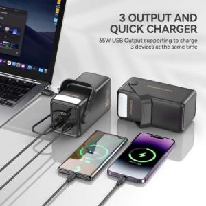 The FOOMEE 60,000mAh Power Bank is built to be a powerhouse for your gadgets. Its 65W PD (Power Delivery) output makes it versatile enough to charge high-demand devices like MacBooks and high-end laptops directly. This unit provides enough energy to charge an iPhone 14 up to 11 times or a Samsung S23 up to 9 times on a single full charge cycle.