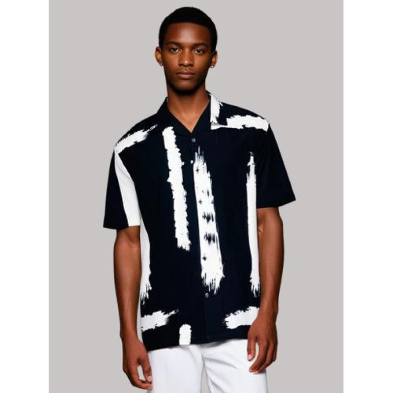 Designed for the man with a confident sense of style, this shirt stands out for all the right reasons. The high-contrast, black-and-white brush-stroke print is bold, artistic, and incredibly sharp.