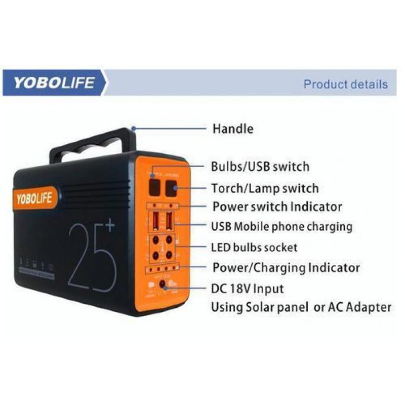 YOBOLIFE Portable Solar Generator Kit (With 4 Bulbs & Music)
